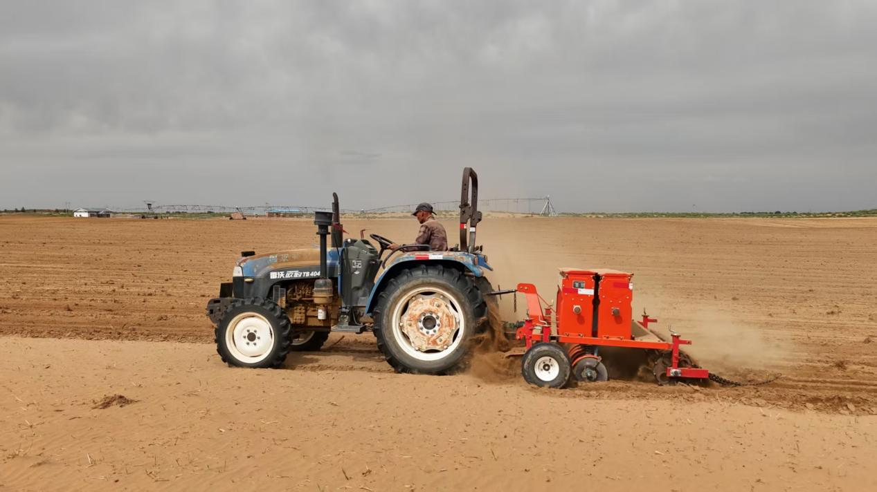 孟克巴雅爾的什拉米種植已實(shí)現(xiàn)全程機(jī)械化作業(yè),從犁耕、旋耕到播種,均采用機(jī)械操作,顯著提升了種植效率。500畝土地的種植作業(yè),僅需一名工人操作即可完成?;诙嗄攴N植經(jīng)驗(yàn),孟克巴雅爾還對(duì)播種機(jī)進(jìn)行了改良。他表示:“改良后的設(shè)備故障率低,播種效率更高?!贝送?,這片什拉米地全面采用噴灌技術(shù)供水,有效提高了水資源利用率和什拉米的成活率。他還向記者介紹,什拉米種植全程施用有機(jī)肥。有機(jī)肥養(yǎng)分全面,不僅能提高什拉米的營(yíng)養(yǎng)價(jià)值,還能增強(qiáng)土壤結(jié)構(gòu)、保水性和微生物活性,減少化肥對(duì)土壤的破壞。