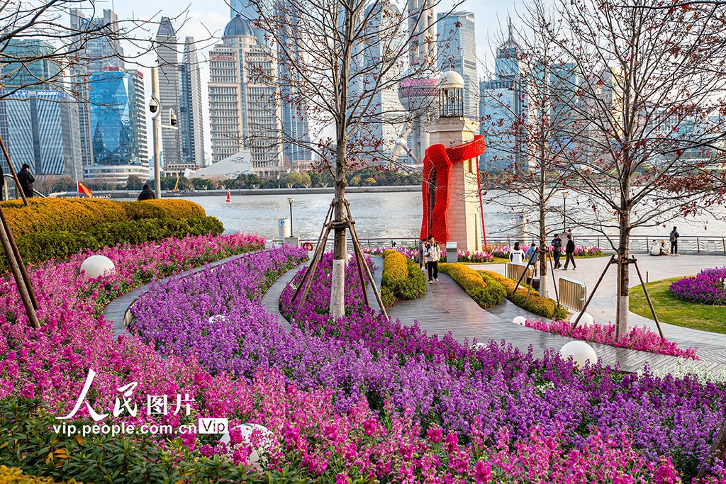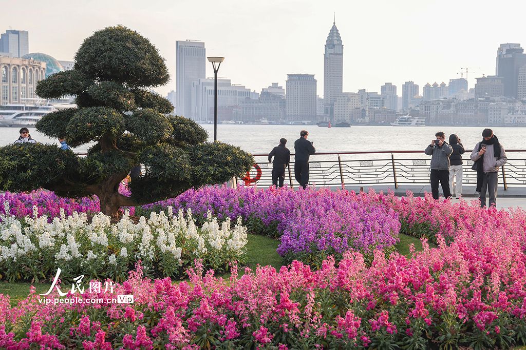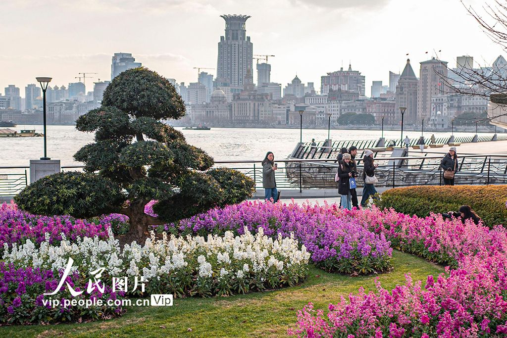 近日,上海虹口區(qū)北外灘的紫羅蘭競(jìng)相綻放,成為黃浦江畔一道亮麗的風(fēng)景線,吸引不少市民游客駐足觀賞。王初攝(人民圖片網(wǎng))