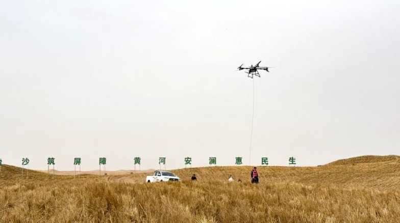 騰格里沙漠飛播作業(yè)區(qū),一架架無人機(jī)掠過沙丘。技術(shù)人員將沙生植物種子裹上特制的營養(yǎng)保水材料,再裝入無人機(jī)播種倉。這層“外衣”不僅能提供萌發(fā)所需養(yǎng)分,還能在干旱條件下鎖住水分。